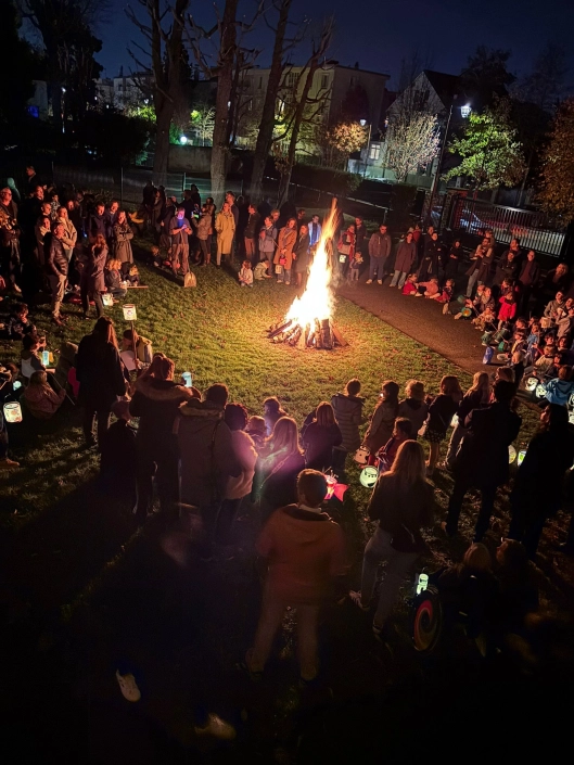 Herrlich leuchtende Laternen, eine von den Vorschulkindern mit viel Freude gespielte Martins-Geschichte und ein stimmungsvoller Spaziergang durch die Straßen zur iDSP und zurück – begleitet von traditionellen Laternenliedern. Ein wunderschönes Martinsfeuer erhellte den Abend, während zwei Papas mit Saxophon und Posaune für die perfekte musikalische Untermalung sorgten. Dazu gab es frischgebackene Weckmänner, warmen Früchtetee und fantastischen Glühwein. Die Atmosphäre war gemütlich, das Wetter spielte mit, und alle – liebenswürdige Eltern und strahlende Kinder – genossen den Abend in vollen Zügen.