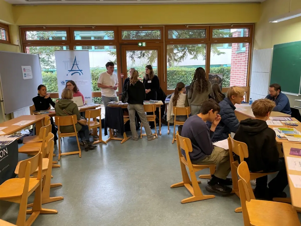 Viele führten viele Gespräche, knüpften Kontakte zu Universitäten oder sammelten erste Anlaufstellen für ein Praktikum. Unsere Gäste der deutschen Abteilungen kamen ins Gespräch mit unseren Schülern, Eltern der Schulen lernten sich kennen, Alumni trafen sich wieder – und unsere Gäste der deutschen und französischen Hochschulen genossen in entspannter Atmosphäre eine für ihre Verhältnisse sicherlich kleine, aber feine Fast-schon-Hochschulmesse. Die nächste große folgt am 14. November in Straßburg – wir sind natürlich auch wieder dabei. Und von dort können wir lernen: Vielleicht ist dann zum Beispiel bei uns im nächsten Jahr für die Neuauflage des Studien- und Berufsinfotages am 26. September, natürlich wieder vor dem Oktoberfest, das Musikzentrum einfach zu klein…