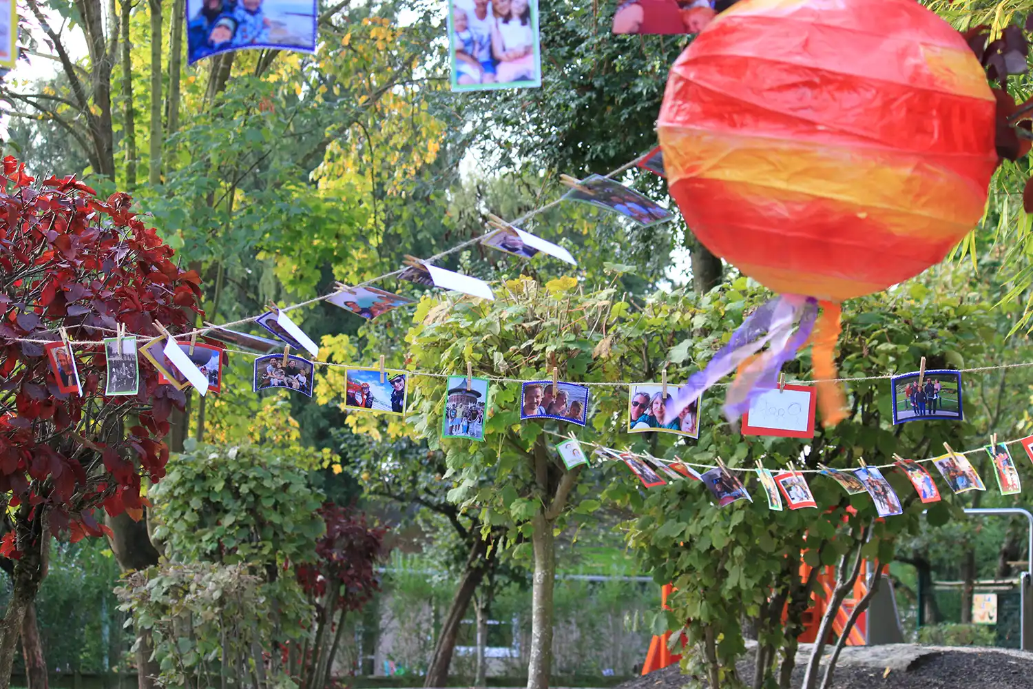 Um das ‚Kennenlernen‘ noch zu vertiefen, durften Kinder und Eltern im Garten nach Familienfotos der Kinder suchen. Wenn eines gefunden wurde, dann musste dieses der entsprechenden roten, gelben, blauen und kunterbunten Gruppe und dem passenden Haus des Kindes zugeordnet werden.